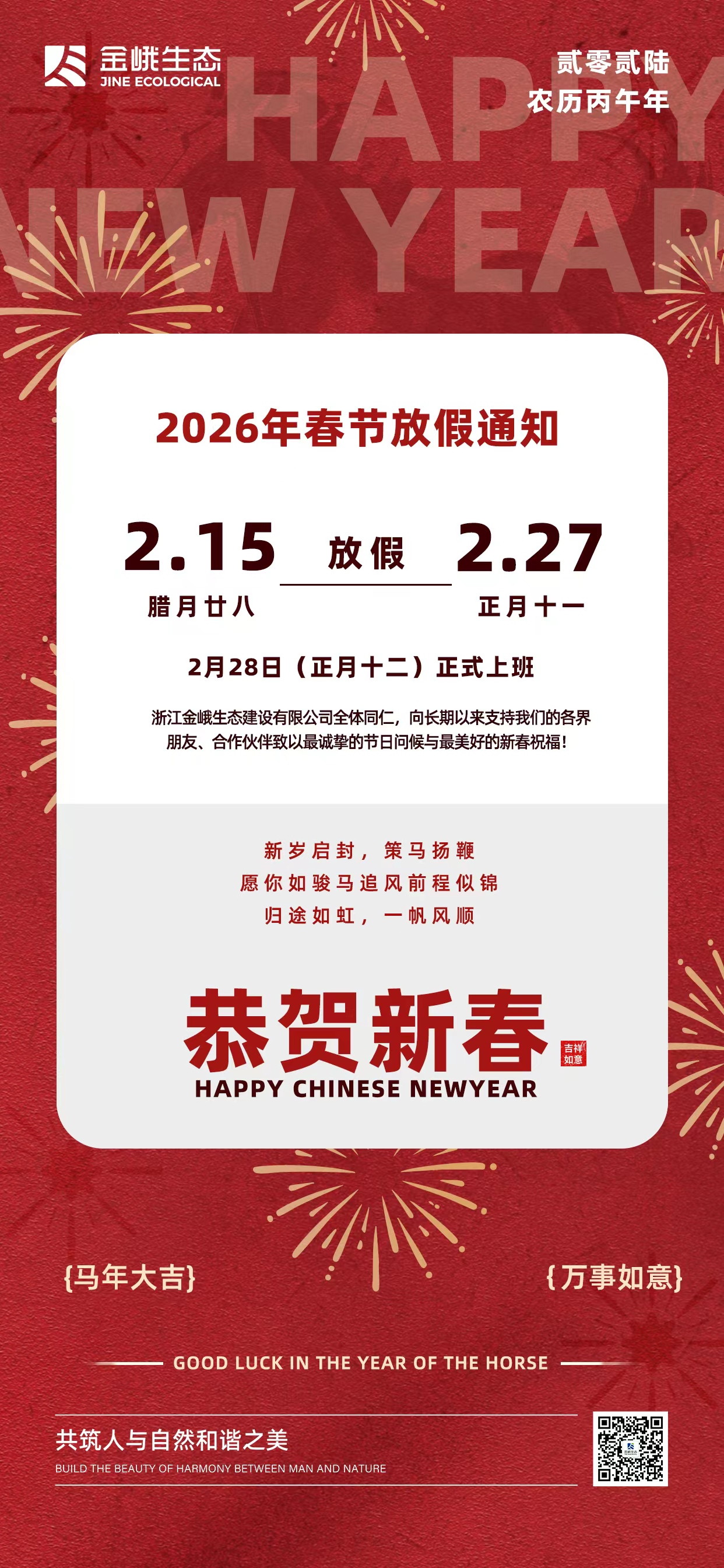 福马贺岁 恭贺新春——金峨生态祝您马年大吉!