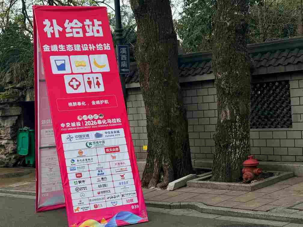金峨生态工会志愿服务队的补给点,恰好设在全程马拉松22.5公里处——溪口镇武岭公园旁。这里是赛程的关键节点,跑友们经过前半程的消耗,正需要及时的能量补充。